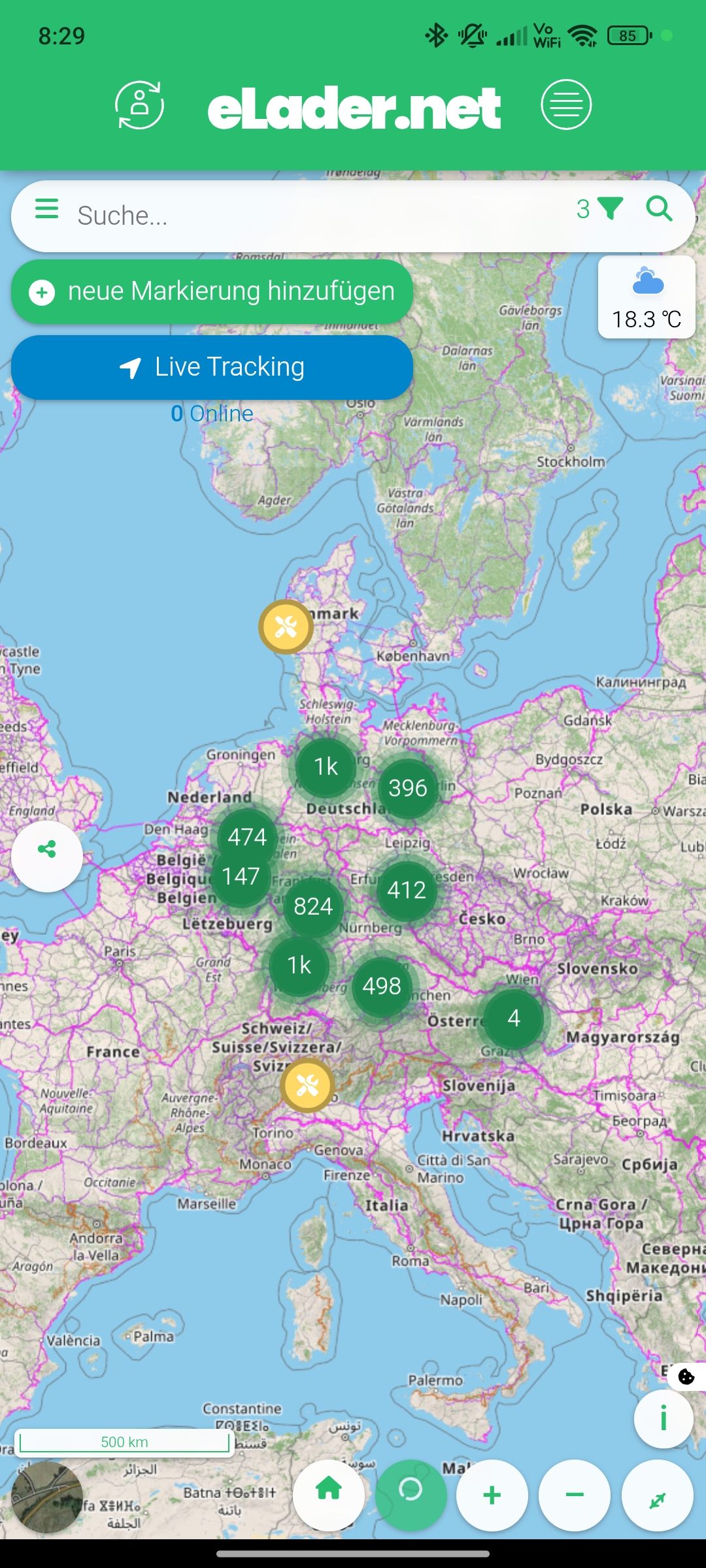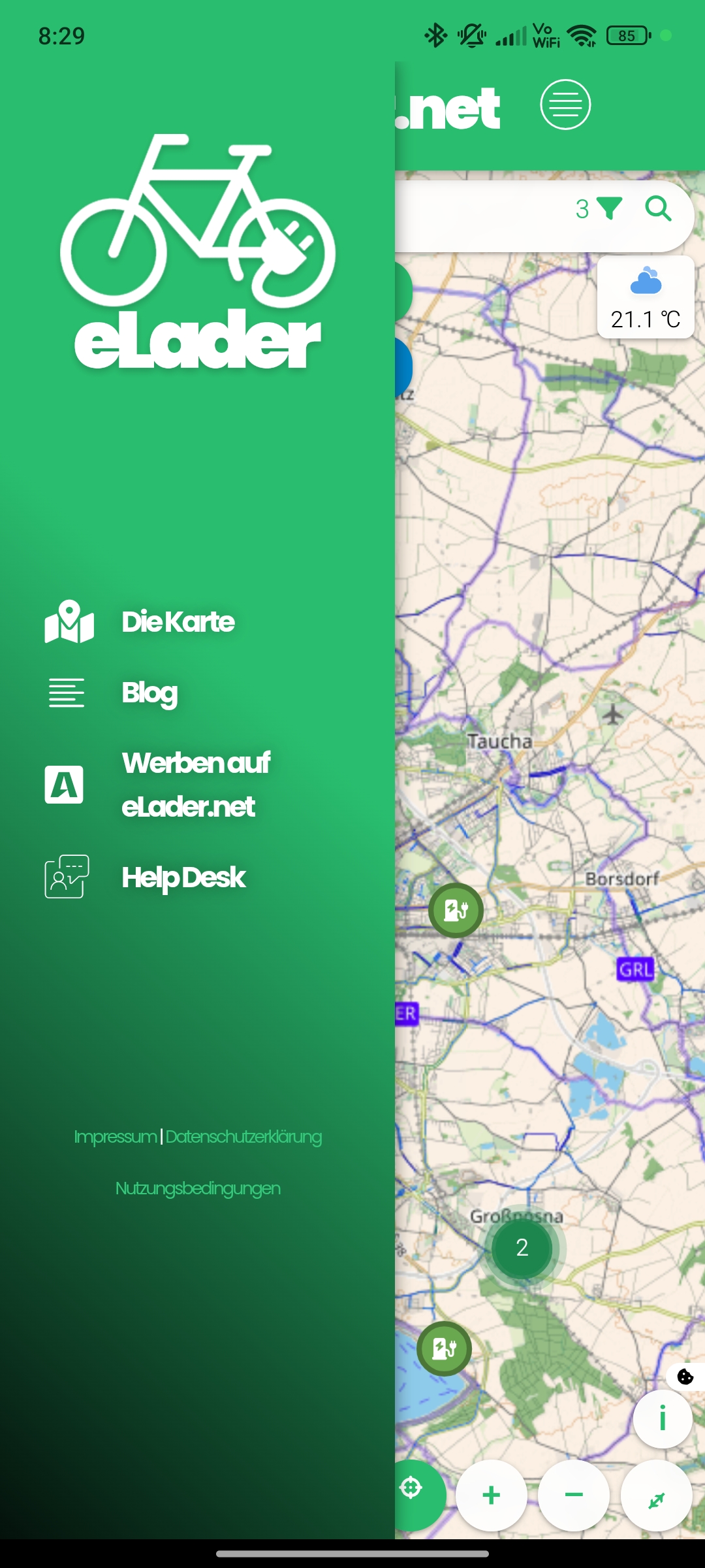 Die App ist so gestaltet das wir so gut wie keine App Updates der App anbieten müssen. Alles was sich auf der WebSite oder Karte von eLader.net ändert, ändert sich auch direkt in der App.
