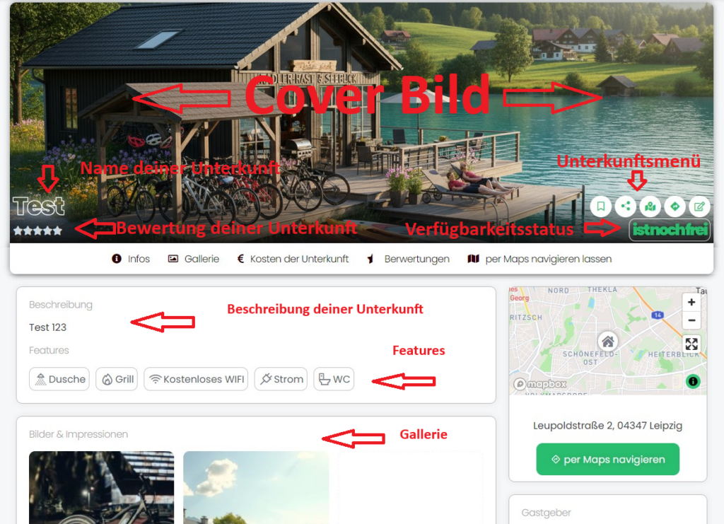 Deine Unterkunft ist nun Online und kann auf der Karte gefunden werden.